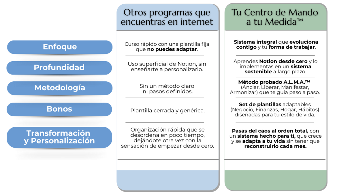 Hoy mi misión es ayudarte a crear tu Centro de Mando a tu Medida™, un sistema claro y sostenible que te dé la estructura y la calma que necesitas para trabajar con enfoque, crecer tu negocio y vivir con más libertad.