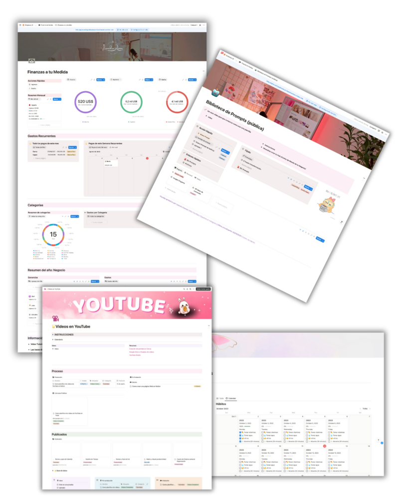 Tendrás un espacio central donde se integran tus tareas, ideas, metas, rutinas, contenido y proyectos. Todo ordenado, claro y accesible.